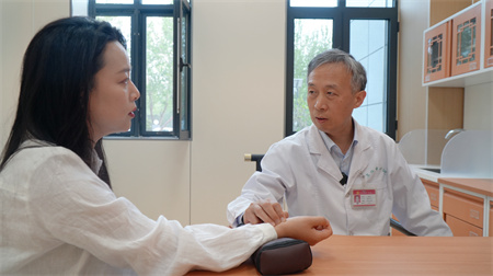 焦作市中青年名中醫、市中醫院腦病科三區主任宋漢秋為記者把脈問診。